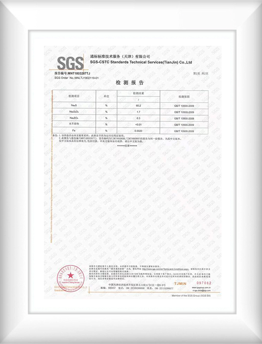 | Sodium Sulfide | 60.2% | GB/T10500-2009 |